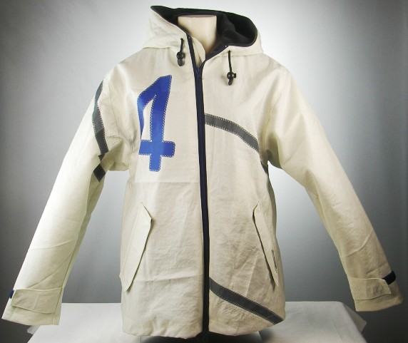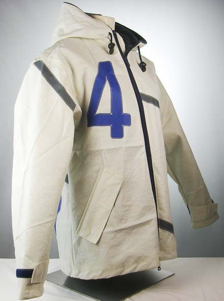 Segeltuch ist wasserdicht wenn es neu und somit geharzt ist. Diese Jacken werden aus gebrauchten, ausgedienten Segeln gefertigt. Die Segel waren jahrelang Wind und Wetter ausgesetzt, erhalten so ihren nostalgischen, „weichen“ Touch und haben fast alles an Harz verloren.