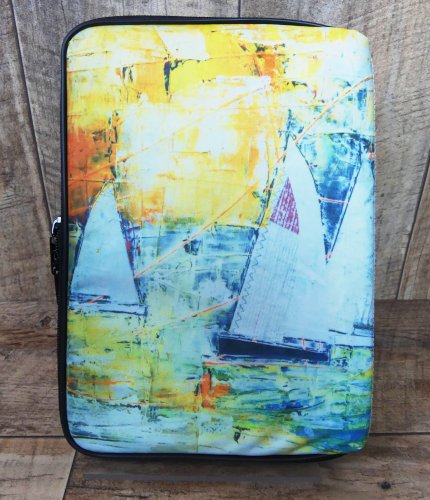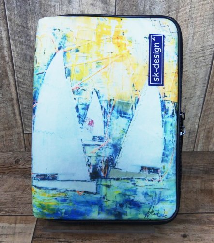 Tablethülle mit einem Yachtgemälde der Marinemalerin Heinke Böhnert: