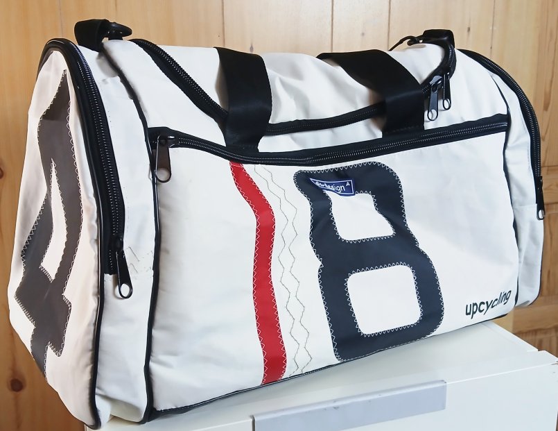 Meine Taschen werden von Hand zugeschnitten, die Taschenteile werden von mir einzeln verziert und erhalten ihr eigenes Design. Das Segeltuch wird vor der Verarbeitung nicht gereinigt. Grobe Verschmutzungen und Beschädigungen werden nicht mitverarbeitet. Vorhandene Nähte, Kauschen, Lattentaschen und Dopplungen aus den Segeln werden mit in das Design übernommen. Alle von mir aufgeklebten Segelnummern und Trimmstreifen werden mit einer effektvollen Zickzacknaht aus Segelmachergarn umnäht, die das Ablösen dieser Applikationen verhindert.